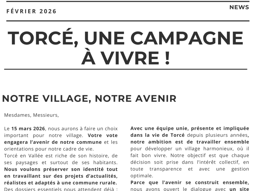 Lettre aux habitants de Torcé en Vallée du 19 Juillet 2024.